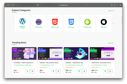 The Marketbob Multi-supplier digital market is a sturdy Hypertext Preprocessor script designed to create a dynamic and flexible online marketplace. This platform permits authors to register, upload, and sell their digital merchandise, together with WordPress templates, plugins, php scripts, graphics, and more. Marketbob aims to provide a continuing and consumer-friendly experience for each dealers and customers within the digital marketplace ecosystem.