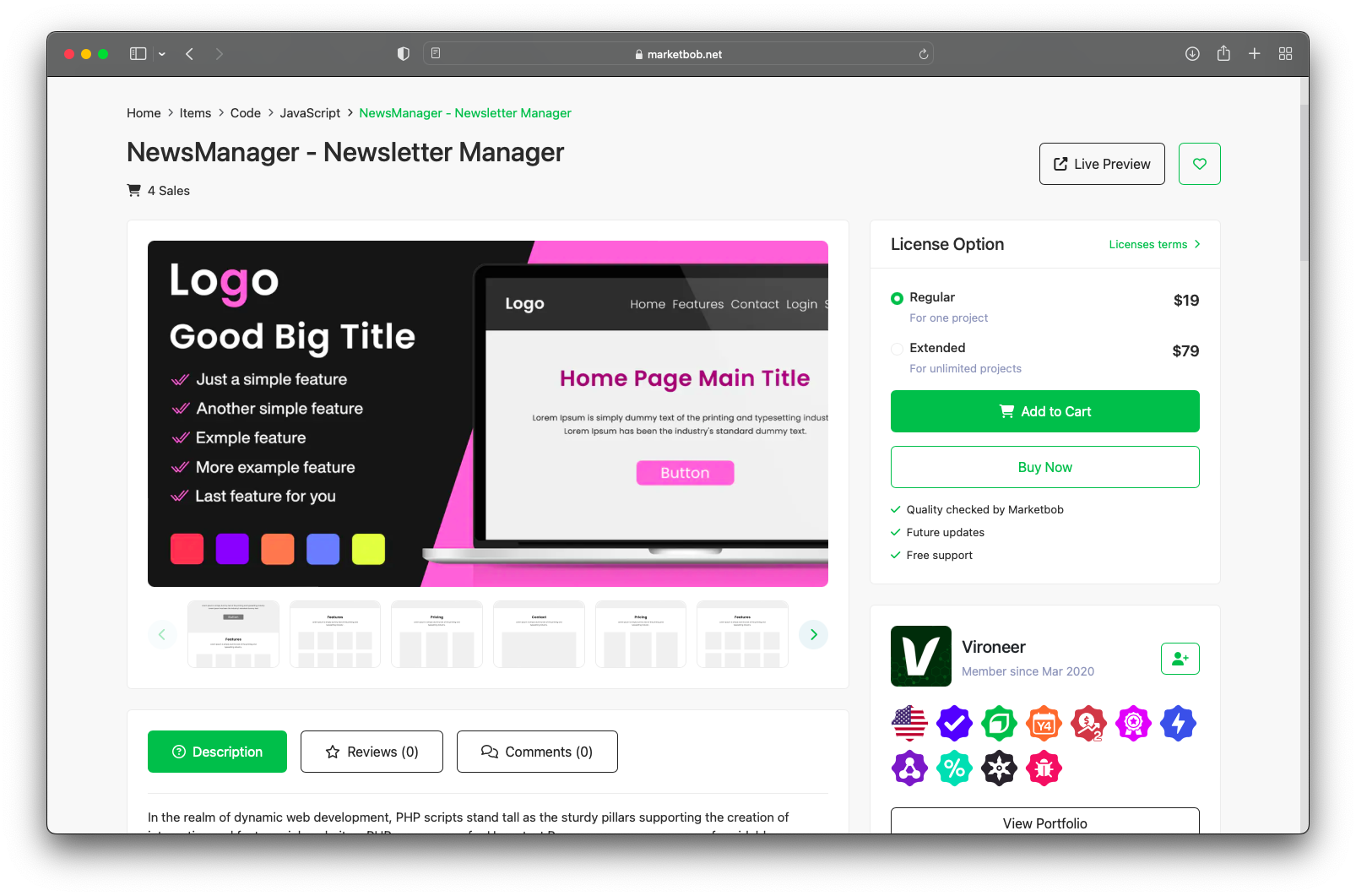 For extra information or to purchase Marketbob, visit the reliable product page on official product page on CodeCanyon.
