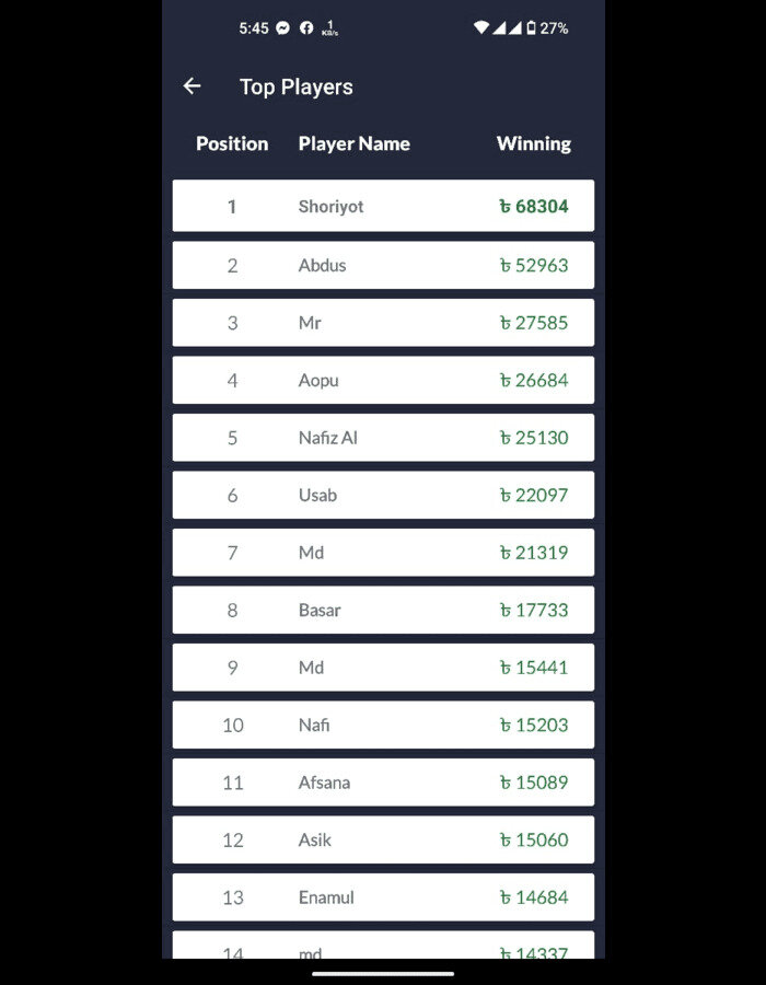 The app ensures that all financial transactions are secure, protecting players' personal and financial information.