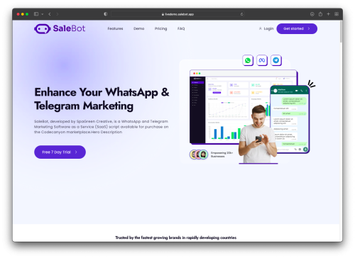 Introduction In the realm of digital marketing, automating communication and campaign management is crucial for efficiency and scalability. SaleBot, available on CodeCanyon, is a robust SaaS script designed to enhance your marketing efforts through WhatsApp and Telegram. This review delves into the features, benefits, and potential drawbacks of SaleBot, helping you determine if it's the right tool for your marketing needs. Key Features Comprehensive Automation: SaleBot is designed to automate your marketing campaigns across WhatsApp and Telegram. It supports bulk messaging, which ensures that your promotional messages reach a wide audience quickly and efficiently. AI Assistance: The script includes AI-driven chatbots that can handle customer inquiries, providing instant responses and support. This feature not only improves customer engagement but also reduces the workload on your support team. Personalized Messaging: With SaleBot, you can create personalized messages tailored to individual recipients. Personalized messaging increases the likelihood of your audience engaging with your content, leading to higher conversion rates. Campaign Scheduling: SaleBot allows you to schedule your campaigns in advance. This feature is particularly useful for planning marketing activities and ensuring timely communication with your audience. High Read Rates: One of the standout benefits of using WhatsApp for marketing is its high read rates. SaleBot ensures that your messages achieve read rates of 95%-98%, significantly higher than traditional email marketing. Meta Cloud API: SaleBot utilizes the official Meta Cloud API, which helps in maintaining the integrity and security of your campaign accounts. This reduces the risk of your accounts being blocked, ensuring smooth and continuous operation. Pros Ease of Use: The user-friendly interface makes it accessible even for those with minimal technical knowledge. High Engagement: With AI assistance and personalized messaging, SaleBot enhances customer engagement and satisfaction. Scalability: Suitable for businesses of all sizes, from small startups to large enterprises. Security: The use of the official Meta Cloud API ensures that your accounts remain secure and compliant with platform policies. Cons Learning Curve: While the interface is user-friendly, some advanced features might require time to master. Cost: As a premium product, SaleBot may have a higher initial investment compared to other marketing tools. Conclusion SaleBot is a powerful and versatile tool for automating your WhatsApp and Telegram marketing campaigns. Its features, such as AI assistance, personalized messaging, and high read rates, make it an excellent choice for businesses looking to enhance their digital marketing efforts. Despite a slight learning curve and a higher cost, the benefits it offers in terms of engagement and efficiency make it a valuable investment. For more details and to purchase SaleBot, visit the official product page on CodeCanyon.